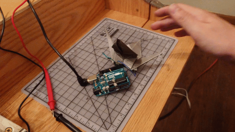 Despite the work done here, I realize the work I've done is only the tip of the iceberg with what can happen here. For example, there are so many other methods to creating a circuit, and perhaps software could be created to assist in the crease pattern generation. This isn't even looking at the other forms that could be created, and any future iterations would experiemtn with different forms and materials. I've done a lot of physical products in my time, but this was the most experimental project I have done, and probably the most fun I had. Despite the difficulties of learning a craft I had not practiced in years, the payoff of the playful interaction with the crane was entirely worth it. It was a great opportunity for me to practice designing for an individual and tailoring a solution for them specifically as well.