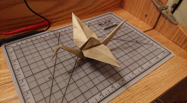 Despite the work done here, I realize the work I've done is only the tip of the iceberg with what can happen here. For example, there are so many other methods to creating a circuit, and perhaps software could be created to assist in the crease pattern generation. This isn't even looking at the other forms that could be created, and any future iterations would experiemtn with different forms and materials. I've done a lot of physical products in my time, but this was the most experimental project I have done, and probably the most fun I had. Despite the difficulties of learning a craft I had not practiced in years, the payoff of the playful interaction with the crane was entirely worth it. It was a great opportunity for me to practice designing for an individual and tailoring a solution for them specifically as well.