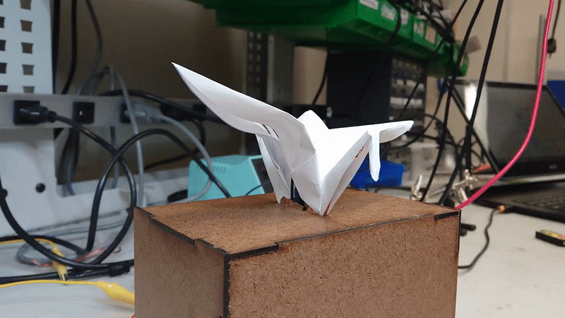 Ultimately, despite not having a prototype, the motion origami was the most inspiring concept that was also feasible to complete within the time limit of the project. The final concept would be a paper crane that flaps its wings in response to touching its neck.