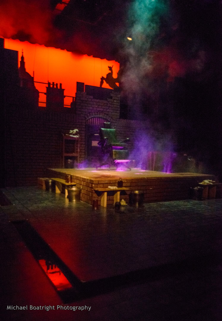 A blood and fog piping system was created behind and under the stage to allow for an immersive experience in 19th century London. We created a series of piping and gates to allow fog to travel to multiple locations on stage from a few sources based on the need. We also created a trough on stage to allow fake blood to be poured in from the front of the stage and slowly fill from spigots on the upstage wall. While, gruesome, the effects made for a pretty metaphor to a otherwise gory scene.